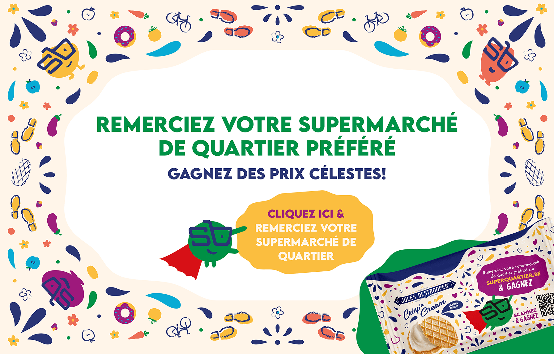 Les supermarchés locaux sont exploités par des entrepreneurs indépendants, des passionnés qui vivent par et pour leur quartier, qui connaissent leur clientèle et adaptent leurs magasins en conséquence. Avec cette campagne de superquartier.be, nous mettons vos nombreux atouts en valeur tout au long de l'année.